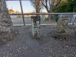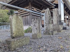 | 入口から境内へ上る階段の最上段に慶雲銘のある石階標がありました。かなり補修されているように見えますが、石材は当時のものが使われているようです。 | |