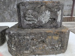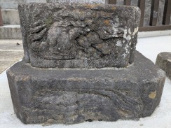| 鳥居本体は再建されたと思われますが、台石は登戸の石工吉沢による嘉永の作ではないでしょうか。獅子の浮彫が見事です。 建立銘の月は割れて判読できませんでした。 |