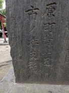 | 境内入って右の隅に置かれています。正面に「奉納/御大典記念」とあり、その下に小さく「敷石本社土■/中原町青年團/市ノ坪支部」とあります。 | |
