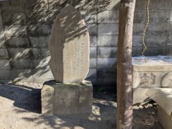 | 東側から入って右手に石水盤の横に立っています。新しすぎるので本来なら対象外ですが、石水盤と同じ石工銘なので記載しました。 | |