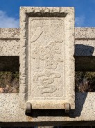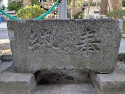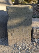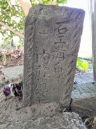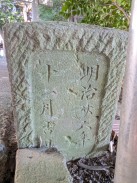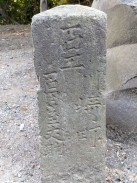 | 拝殿の右手(境内南側)に御大典奉祝記念之碑があり、その前左右に先代の石階標が保存されています。 碑文によれば、「一の石段に『石工川崎町石田屋丈助』の銘あり、その後逐次築造され・・五の石段には『・・内藤慶雲』の銘あり」と記されています。 下田神社の石宮に奉納年が明和五年(1768)で「川崎町 石田屋條助」銘の石宮があります。もし同一人物だとすると、文久三年は改修時の銘となり、最初に作成されたのは その約100年前ということになります。 |