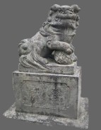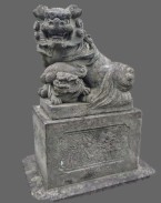 慶雲三代目の作品。子狛の大人びた顔と、気迫でゆがんだ?珠が印象的です。台座の日本通信工業は現在のNECプラットフォームズ社