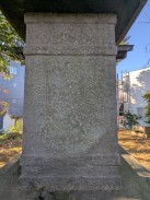 富士塚上にある最も大きな石水盤です。背面には近傍六ヶ村の名が刻まれています。「講中」とあることから、富士講による奉納と思われますが、講紋の字が読めません(浄?淳?)