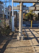 | 京王稲田堤駅から、線路に沿って西へ約500mほど進むと住宅街の中にある神社に出ます。境内はただの広場という感じですが、拝殿前の老松樹が神格を漂わせています。 | |