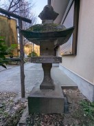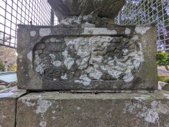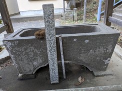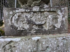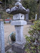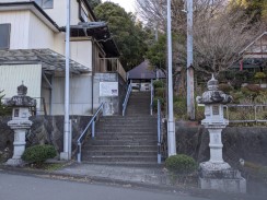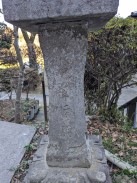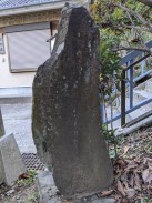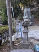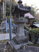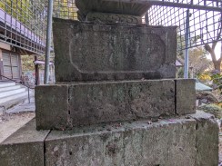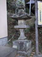 | 本堂前の階段左横に置かれています。左側しかなく、右側にはなにもありませんでした。石工銘は一部が瓦?に隠されて確認できませんでした。(「川崎市石造物調査報告書(謝辞[11])」から引用しています) | |