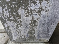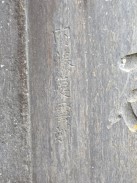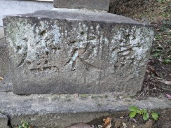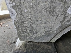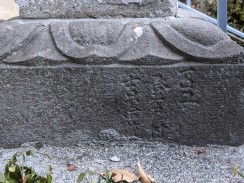 | 本堂前階段上がったところの左側です。(左側と右側で奉納年が異なるため、別物として取り扱います) 石工銘が一部埋もれていますが、登戸吉沢初代の伊勢屋藤吉と思われます。 吉澤石材店のブログ[4]では、これが現存する一番古い石造物であると書かれています。 |
