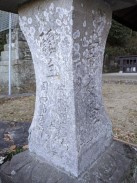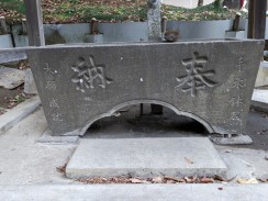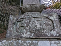 | 本堂前左側に建っています。倒壊予防のため上部が鉄柵で覆われていました。最上段の台座には見事な彫が施されています。登戸吉沢二代目の光信が作成し、その後、大正十三年十一月に改修されているようです。(改修も吉沢耕石が行った可能性がありますが、銘は確認できませんでした) | |