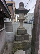 | 寺院入口脇の街道沿いに置かれています。竿には常演寺の本尊にちなみ、"仁王尊"と彫られています。 石工銘にある "追分" は、道が分岐する場所を指す言葉で、内藤新宿で甲州街道と青梅街道が分岐していたことによるようです[3]。 |