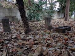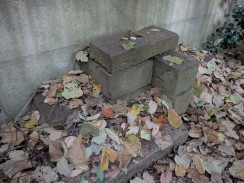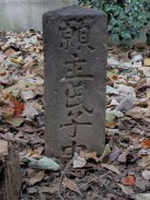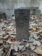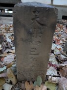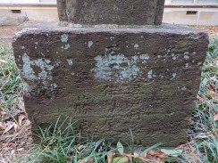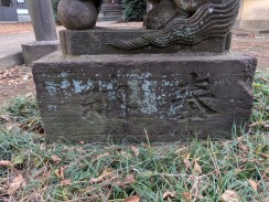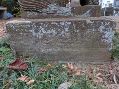 | 拝殿右側の境内奥に二本の石柱が置かれています。おそらく1対の敷石供養塔と思われます。 石工は調布不動尊の馬頭観音像と同じかも知れません。 |