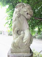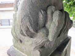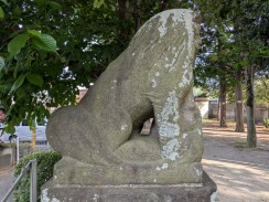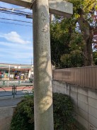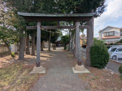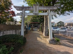 | 現在野川に狛江市の野川児童公園で合流する入間川は、GoogleMap では国道20号線が最上流となっていますが、地形図を見るとさらに上流(北西)方向に中央高速を越えて野ヶ谷通りに沿って東八道路近くまで谷戸(かつての川の跡)が続いています[1]。その谷斜面に細長い神社境内が位置しています。 神社の北約300mの場所には、「入間川源流地跡」の標識が立っています。 |