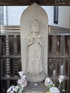 | "公安"="交通安全"と思われますが、正面に戒名・背面に七十四歳とあることから、特定の交通事故を供養する仏像では無さそうです。 建立年銘が無いため、没年を記載しています。 |