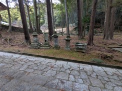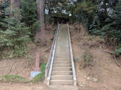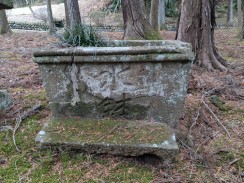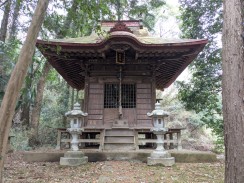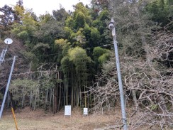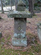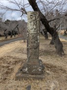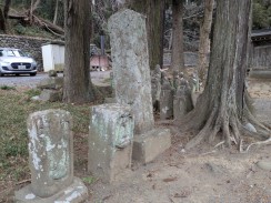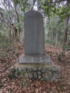 | 惣門手前左側に立つ信徒会館の奥にある小高い林の中に石碑が置かれています。通じる道はないため、会館裏の駐車場から木々の中を登っていくことになります。 碑文から "大貫秋次郎" という人に対する頌徳碑のようです。「さがみっこ[2]」によれば、大貫秋次郎は、かつて大泉寺前に作られた小山田学校で生涯を教育に捧げた教育者だったようです。 石工銘ですが、現在八王子に該当しそうな石材店は見つかりませんでした。 |