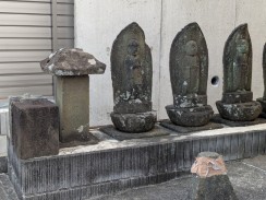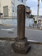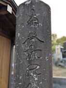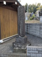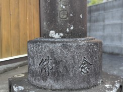 | 堂宇の右手前に立てられている柱状の念佛塔です。徳本と呼ばれる独特の書体で名号が彫られています。 石工銘にある愛甲郡煤ヶ谷村は県北西部にあり、現在清川村となっている地域ですが、かつては七沢石と呼ばれる石材の石切場が近くにありました。 城所權右衛門は町田市内で、いくつか作品を残しています。 |