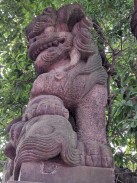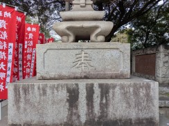 | 参道左手に置かれています。石碑に「奉納/金五百萬圓也」とあり、寄附を行った東京瓦斯大森工場の名が記され、背面には社長・副社長の名も見えます(副社長の安西氏は、13年後に社長となり、以降約20年会社に君臨された方です)。 「石福」は、大正期に品川区の蛇窪神社で狛犬などを残していますが、銘は「芝二本榎」でした。昭和になって、池上へ移動したようです。 |