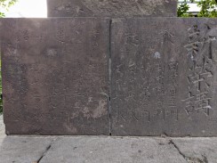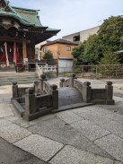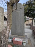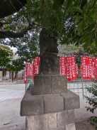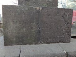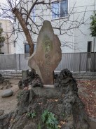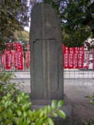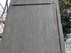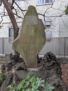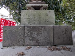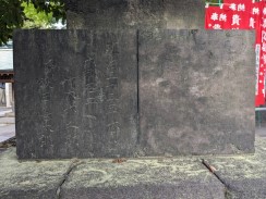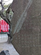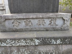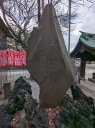 | 入口鳥居を入ってすぐ左手に置かれています。台石には「復興記念」と彫られ、東京大空襲で焼失した社殿の再建を記念した碑のようです。 前年に作成された奉納碑と同じ石福の作です。 |