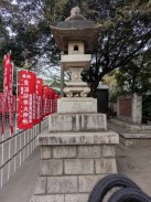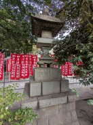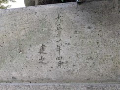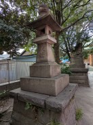 | 参道左側で入口から二番目、参道右側では最も入口側となる位置にある石燈籠です。大正十一年の石燈籠より新しく見えるのですが、一部再建されているのでしょうか?(石材の違い?) | |