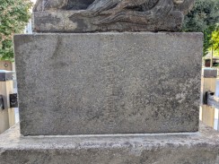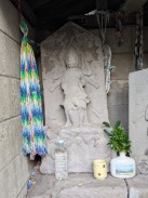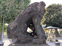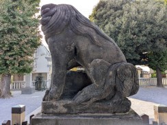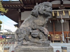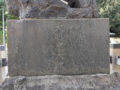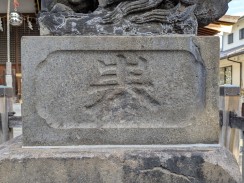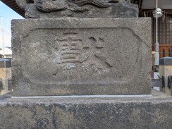 | 戦災のため、かなり表面が傷んでいます。子狛への授乳姿が特徴的です。願主は天明忠太郎となっています。 | |