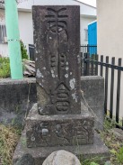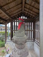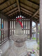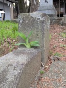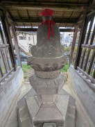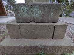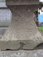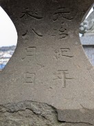 | 石段を登った先、拝殿前に置かれています。「紀年」という表現が謎ですが、「元年」の意と解釈しています(登戸吉沢二代目の藤三光信と考えれば、年代的に矛盾はないので)。 | |