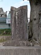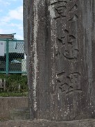 | 入口鳥居の右横に置かれています。明治廿七八年役(日清戦争)、丗七八年役(日露戦争)だけでなく、明治十年役(西南戦争)の従軍者も含めて顕彰している碑です。 上部が破損しているようにも見えますが、最初からこういう姿だったのでしょうか? |