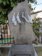 | 磯子区は磯子駅から北は下末吉台地、南は起伏にとんだ多摩丘陵でかつての海岸線である国道16号近くまで丘陵が迫っていました。その海岸近くの丘陵斜面に神社が鎮座しています。 境内は隣接する幼稚園の園庭も兼ねているようで「お遊びタイム」になると入口の扉が閉まります。 |
