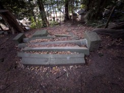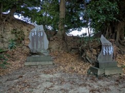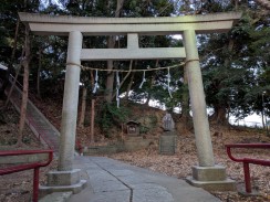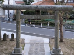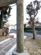 | 石造りの神明鳥居です。表面の傷みが進行しており、右脚にあるという奉納年銘も石工銘も判読できないため、「横浜市文化財調査報告書 第18輯(謝辞[40])」から記載を引用しています。 | |
