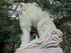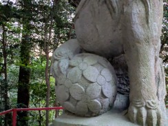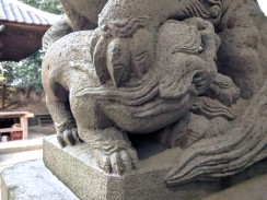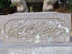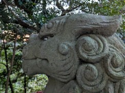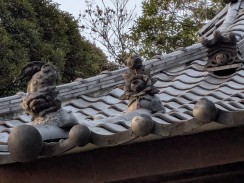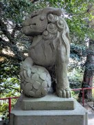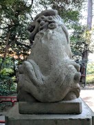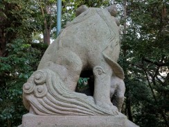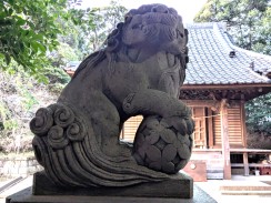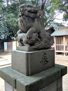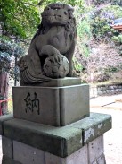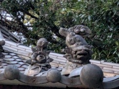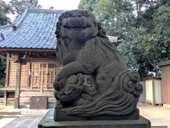 | 港南台付近から西へ流れて柏尾川と合流するいたち川の右岸(北)側丘陵地の上に神社があります。 「フォートラベル[1]」によれば、屋根上にある唐獅子と蕾付き牡丹の飾り瓦は珍しいそうです。 |