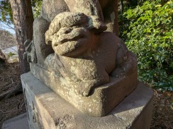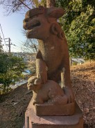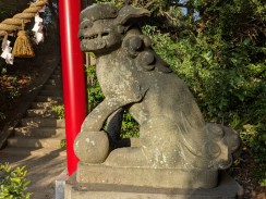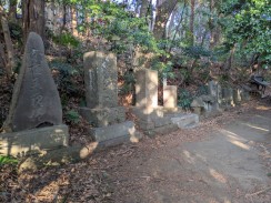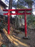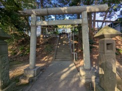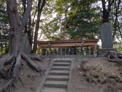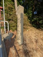 | 「汲沢」はウィキペディア[3]では"ぐみさわ"となっていますが、郵便番号検索[4]では"ぐみざわ"となっています。 戸塚から藤沢へ尾根道を南下する東海道から西へ分岐して宇田川沿いの谷へ降りていく街道の途中に神社があります。 木々に覆われた小高い丘上の拝殿を中心に、多くの石碑・石塔が残されており、地域の歴史を感じさせてくれます。 神社入口の通常幟立てに使用される石柱に木組みの鳥居のような門が設置されているのは初めて見ました。 |