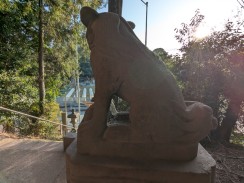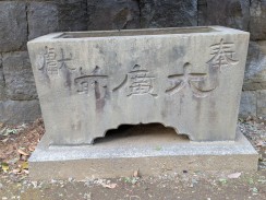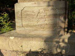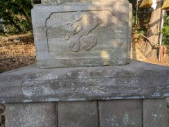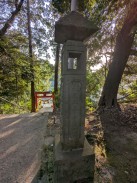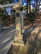 | 入口から1つ目の階段を登った赤鳥居の前左右に置かれています。 台座正面に「日露戰役/凱旋紀念」とあり、裏面に軍人名が列記されています。 |
