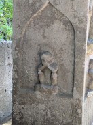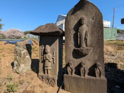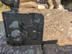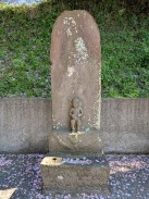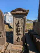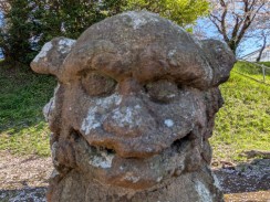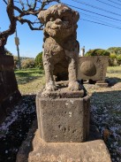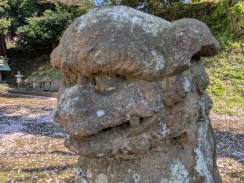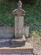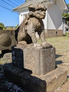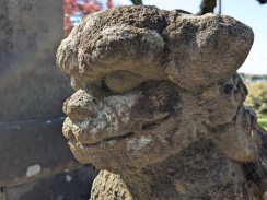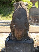 | 三対の中で最も古いものです。右側台座の背面にかすかに奉納年銘が見えるのですが、"月"以外はかすれて読みとれないため、「横浜市文化財調査報告書(謝辞[27])」を参考にしています。 それによれば、江戸末期の作なのですが、はじめ型に通じる愛嬌を感じる顔です。 |