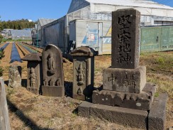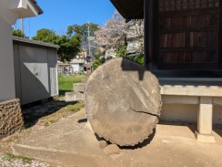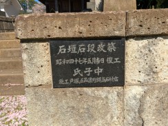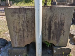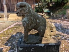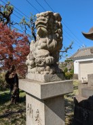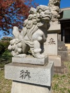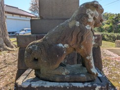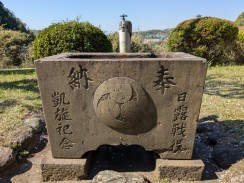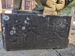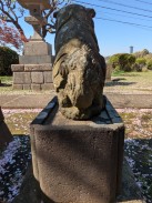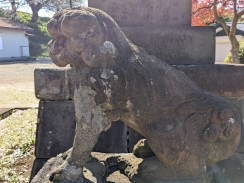 | 拝殿前左手前に置かれています。正面に「日露戦役/凱旋紀念」とあり、背面に出兵者の氏名が列記されています。 秋元幸太郎は、戸塚区・泉区で作を残している片瀬(現藤沢市)の石工です。 |