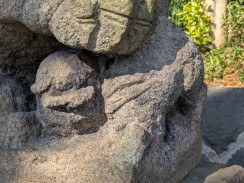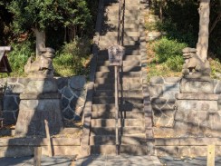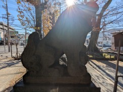 | 保土ヶ谷から南下する東海道が、丘陵を権田坂で越え、境川水系の谷戸沿いに下ってきて平戸永谷川と合流する地点に神社があります。 石水盤に源氏の笹竜胆があるように、源頼朝を祀った神社です(同じ戸塚区の品濃にある白旗神社は義経を祀っています)。 |
