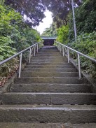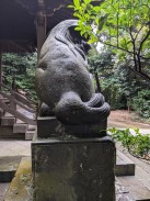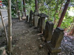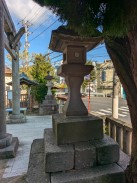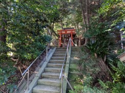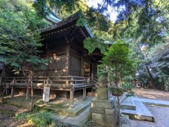| 柏尾川右岸(西側)の崖線に沿った戸塚宿の中を通った東海道が、再度多摩丘陵を登っていく入口(崖線斜面)に神社入口があります。階段参道を登った丘陵上に拝殿が置かれ、その裏山は古墳だったようです。 この古墳を冨塚と呼んだことが「戸塚」という地名の由来だそうです[1]。 |
