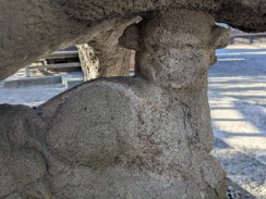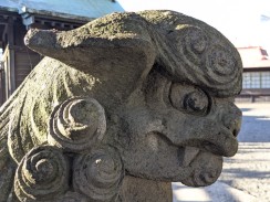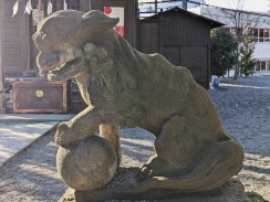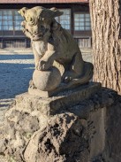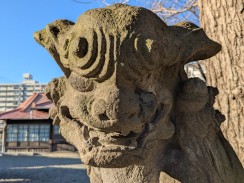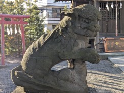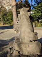 | 尾流れという江戸狛犬の形式でありながら、大きな目、水平に張り出した耳など、昭和戦前の雰囲気を持つ狛犬です。 | |