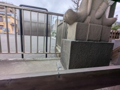 | 飯嶋吉六作とされていますが、石工銘が台座の背面にあるようで、回り込んでの撮影が難しく、はっきりとは確認できませんでした。 2025年に再訪したところ、箙(矢筒)が新調されていました。 |