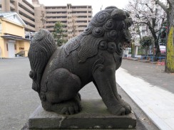 | 川崎駅北側にひろがる円形の多摩川氾濫原の西側外周にあたる自然堤防地上に昭和三年まで神社があったようです。現在その場所は横須賀線が通っており、神社は南西約100mの位置に遷座しています。 | |
