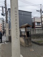 | 江戸時代の俳人、加舎白雄と大島蓼太が東海道鶴見橋を詠んだ俳句の句碑で、神社公式ページの境内案内[1]によれば、「朝夕や 鶴の餌まきか 橋の霜」と「五月雨や 鶴脛ひたす はし柱」の二句が彫られています。 | |
