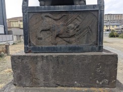 | 添田知通壽像碑の横に台座が残っています。台座に従軍者/戦死者の名前があります。境内の隅に破損した石碑が並べられており、これが元々立っていたと思われます。 | |